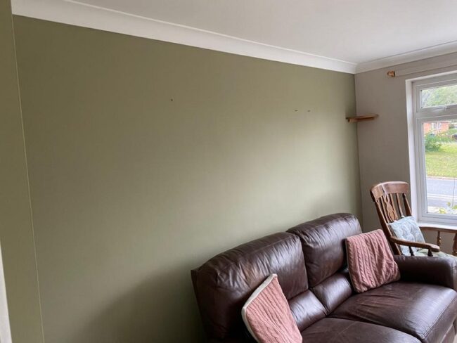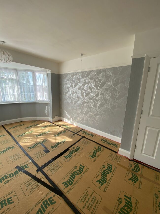 Full redecoration of lounge area including all preparation work, wallpapering, fitting of fireplace, ceiling, woodwork and painting.
